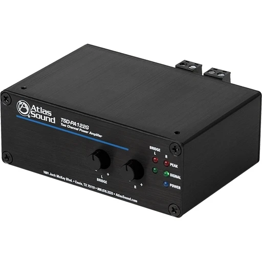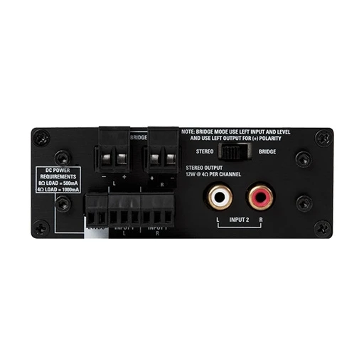Усилитель мощности 2х12 Вт – 4 Ом, 1х24 Вт – 8 Ом, балансный/небалансный вход, подключение в «мост». Габаритные размеры: 381х100х70 мм. Блок питания 24 В приобретается отдельно.