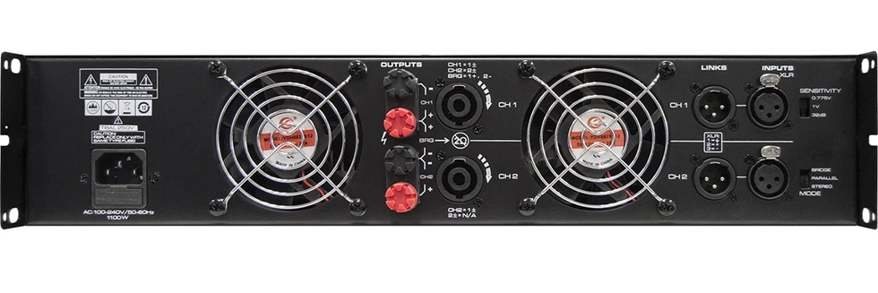 Усилитель мощности 2x1300 Вт – 4 Ом, 2x770 Вт – 8 Ом, 1х2600 Вт – 8 Ом.