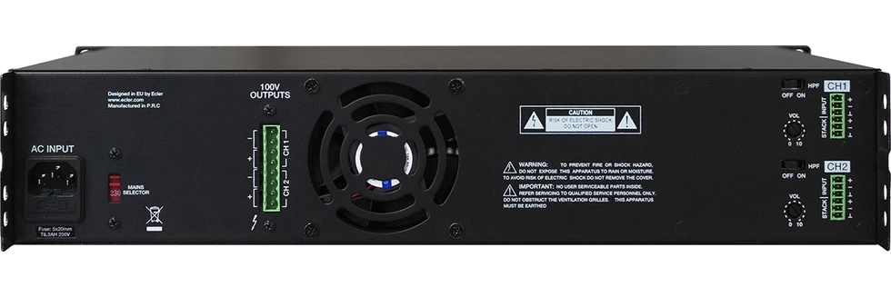 Усилитель мощности 2x500 Вт – 100 В. Защита, фильтр верхних частот. Балансные проходные входы.