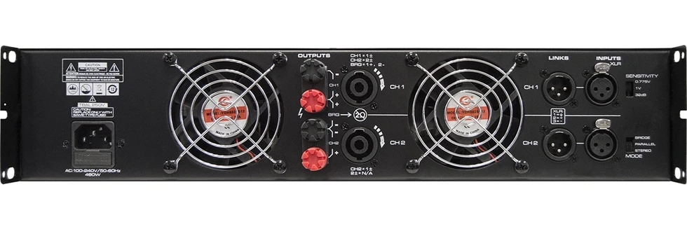Усилитель мощности 2x630 Вт – 4 Ом, 2x340 Вт – 8 Ом, 1х1220 Вт – 8 Ом. Защита. Режимы: мостовой, параллельный, стерео. Балансные входы.