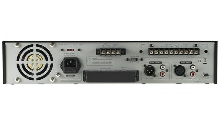 Усилитель мощности 480.650 Вт – 8 Ом, 50/70/100 В. Вх: 2хXLR, 2х(2хRCA), 1хКлеммный блок (телефонный пейджинг). Регулировка тембра.