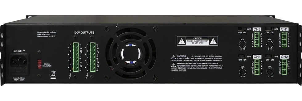 Усилитель мощности 4x450 Вт – 100 В. Защита, фильтр верхних частот. Балансные проходные входы.