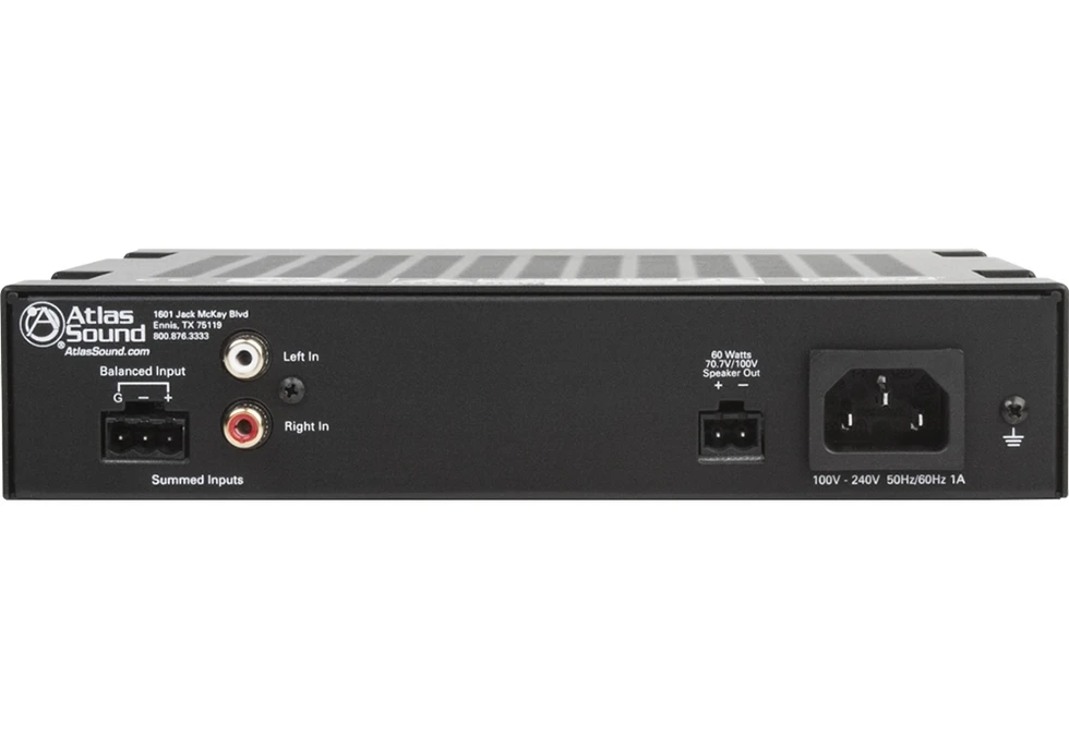 Усилитель мощности 60 Вт – 4 Ом, 70/100 В, линейный балансный/ небалансный вход, корпус 1/2 U.