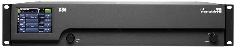 Усилитель 4x2600 Вт/4 Ом с контроллером: цветной сенсорный дисплей, предустановки для всех АС d&b, пароль, 32 полосный граф. EQ, фильтры, delay. Дистанционное управление Ethernet/CAN. Входы: аналог/AES. 2U, вес 19кг. Разъем NL4.