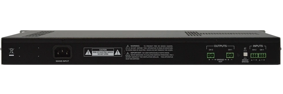 Усилитель мощности класса D 2x310 Вт – 4 Ом, 2x165 Вт – 8 Ом, 1х600 Вт – 8 Ом. Отключаемое энергосбережение, защита. Режимы: мостовой, параллельный, стерео. Балансные входы без выходов.