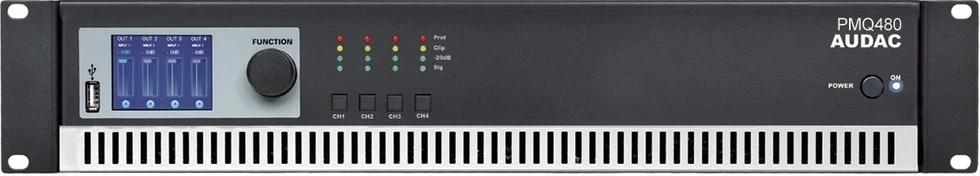 Усилитель мощности класса D с DSP-процессором, 4х480 Вт/100 В/8 Ом. Вх: 4хXLR c проходными 4xPhoenix. Вых: 4xPhoenix. Упр.: RS-232. Габаритные размеры: 2Ux420 мм.