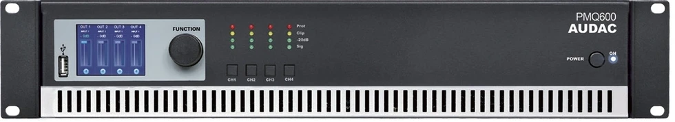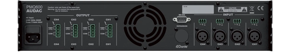Усилитель мощности класса D с DSP-процессором, 4х600 Вт/100 В/8 Ом. Вх: 4хXLR c проходными 4xPhoenix. Вых: 4xPhoenix. Упр.: RS-232. Габаритные размеры: 2Ux420 мм.