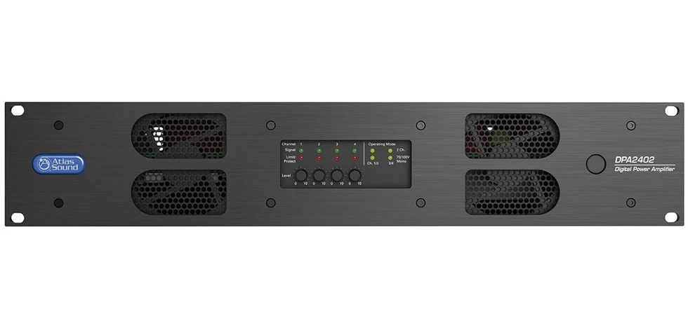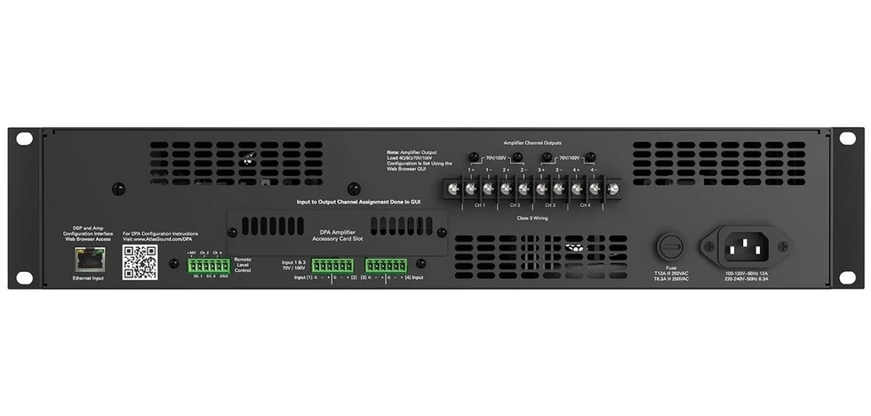 Усилитель мощности с DSP-процессором. 4x600 Вт – 4 Ом, 4x300 Вт – 8 Ом, 2х1200 Вт – 70/100 В, веб-интерфейс. Высота 2U.