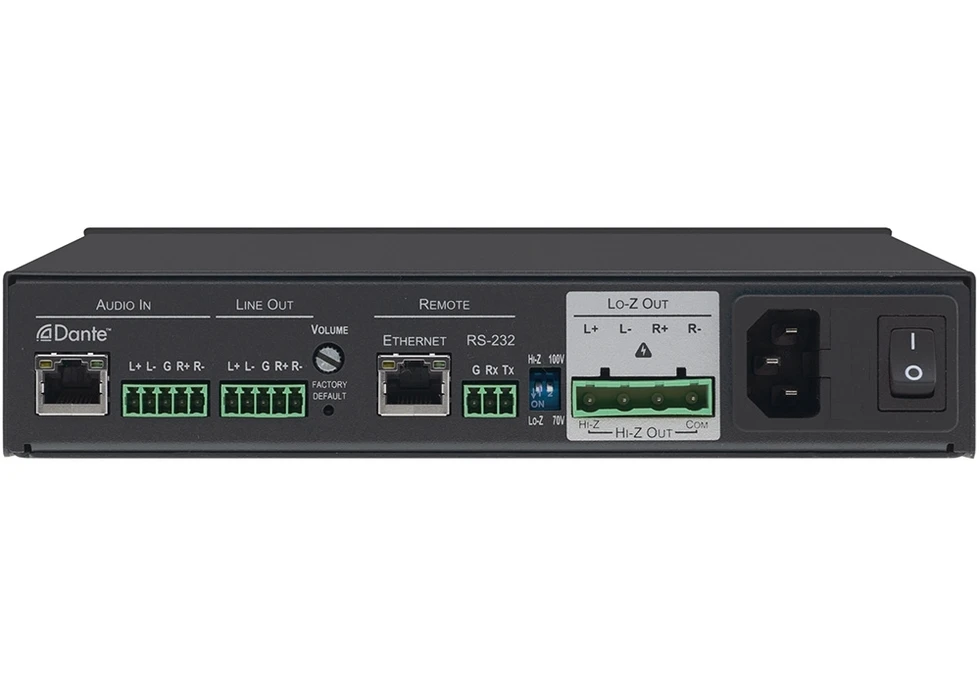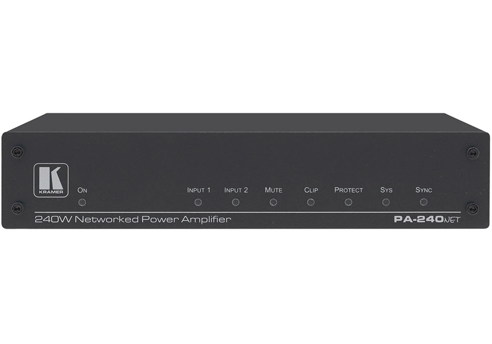 Усилитель мощности с DSP-процессором. 240 Вт – 70/100 В, 2 х 120 Вт – 4/8 Ом, спящий режим, балансные и небалансные входы с проходным выходом, управление по RS-232 и IP (web-интерфейс).