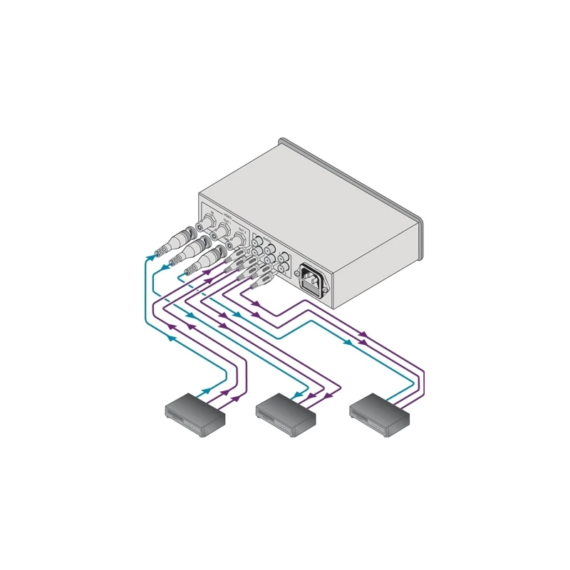 Усилитель-распределитель 1:2 композитных видео- и звуковых сигналов, 400 МГц.