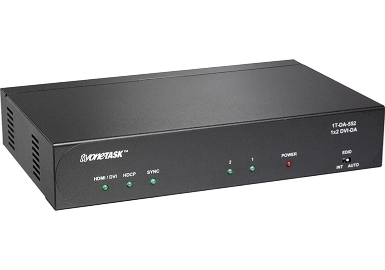 Усилитель-распределитель 1:2 сигнала DVI-D 1080p/60 (1920x1200) с HDCP 1.1, поддержка Deep Color 12 бит, полоса пропускания 225 МГц – 2,25 Гбит/с.
