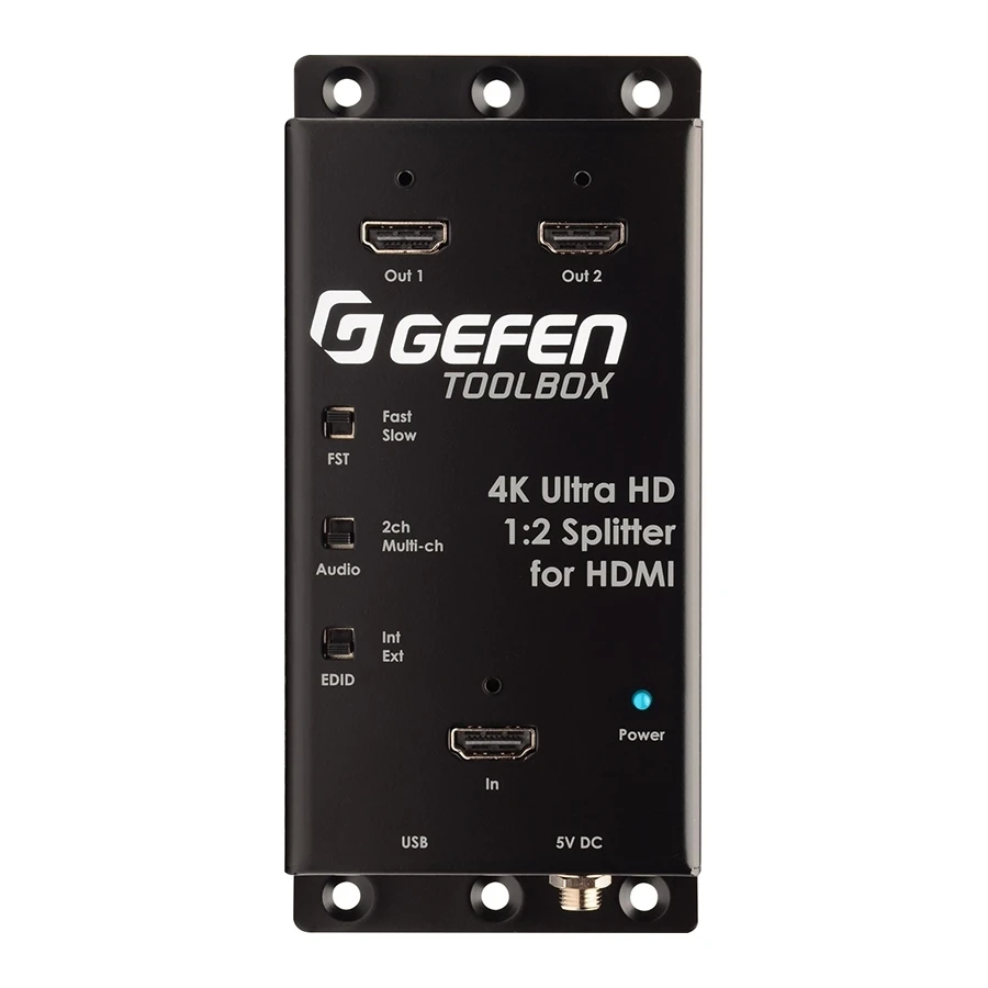 Усилитель-распределитель 1:2 сигнала HDMI 2.0 1080p (4096х2160/30, YUV 4:2:0 – 3860х2160/60, 3D) с HDCP, FST. Расширенный EDID. Поддерживается 10-уровневое каскадирование. Настенный, поддержка ПО Syner-G, цвет черный.