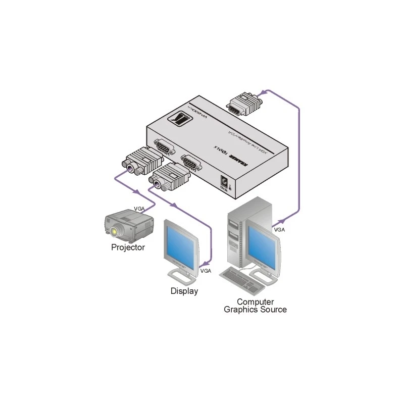 Усилитель-распределитель 1:2 сигнала VGA с регулировкой уровня и АЧХ, 405 МГц.