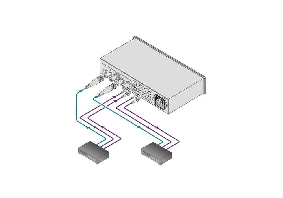 Усилитель-распределитель 1:2 видео- и звуковых сигналов c регулировкой уровня и АЧХ, 84 МГц.