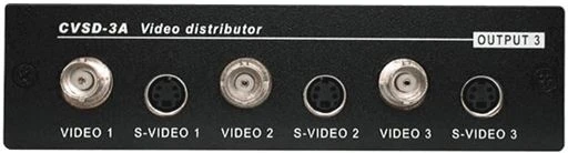 Усилитель-распределитель 1:3 CV (RCA), S-Video (mini-DIN4) и стереоаудио (2xRCA).