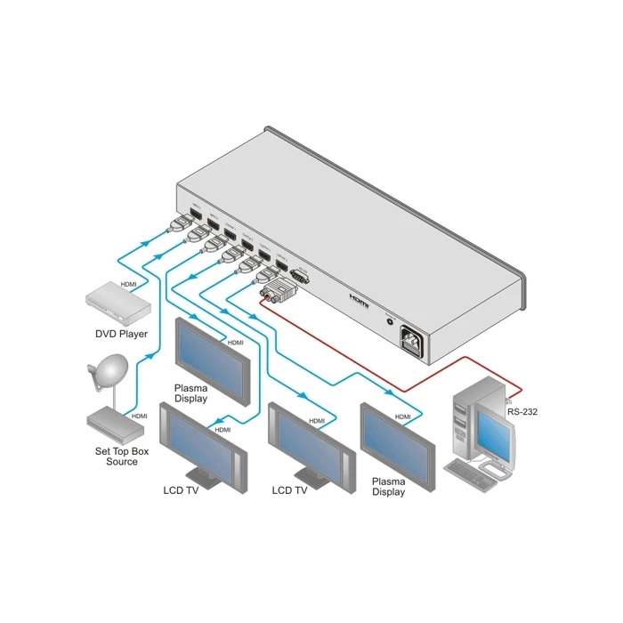Усилитель-распределитель 1:4 сигнала HDMI с коммутатором 2x1.