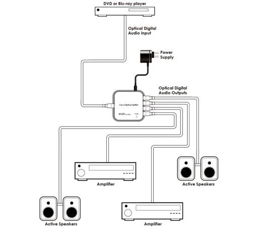 Усилитель-распределитель 1:4 сигналов цифрового двухканального аудио S/PDIF (TOSLINK) с частотой дискретизации до 192 кГц.