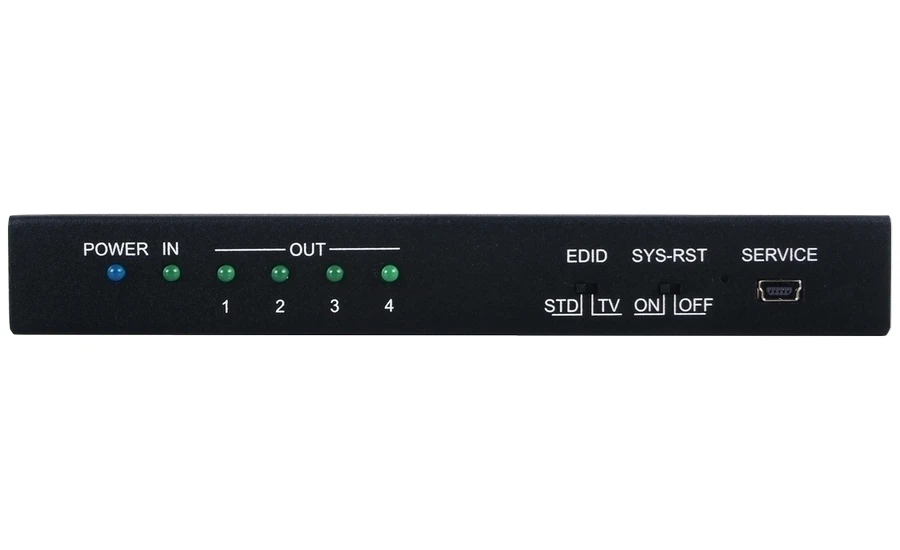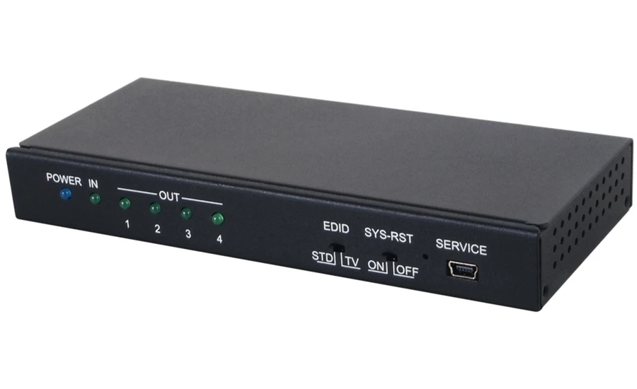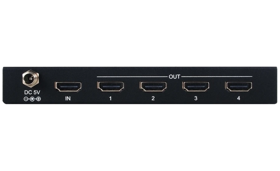 Усилитель-распределитель 1:4 сигналов HDMI 2.0 3D, 4096x2160/60 (YUV420) с HDCP 1.4, управлением CEC и EDID, расстояние передачи сигнала 4K – до 5 м. Поддержка эмбеддированного аудио до 192 кГц.