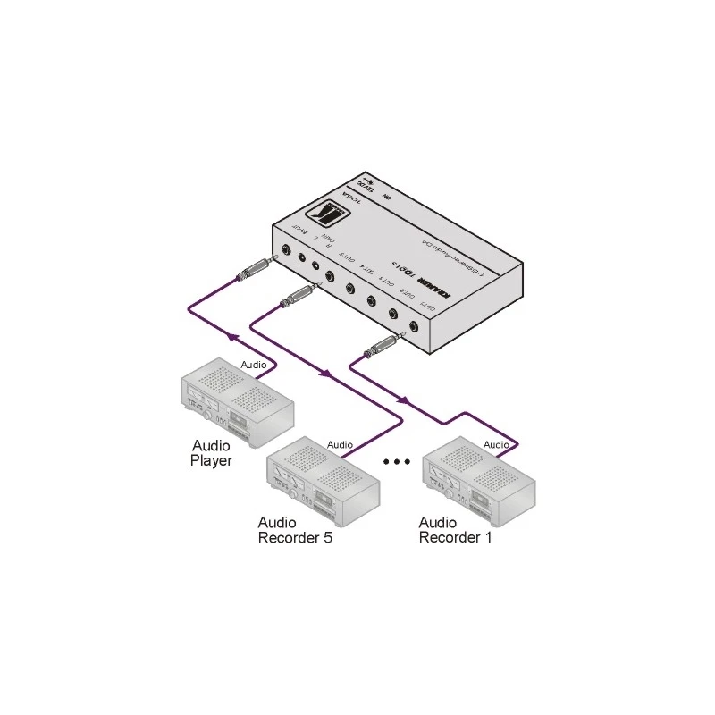 Усилитель-распределитель 1:5 звуковых стереосигналов c регулировкой уровня, 20 кГц.