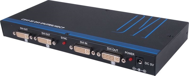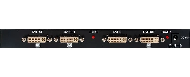 Усилитель-распределитель 1:8 сигналов DVI-D Single Link 1080p/60 (1920х1200) с HDCP и EDID на 1-м выходе, расстояние до 15 м.