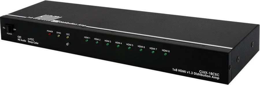 Усилитель-распределитель 1:8 сигналов HDMI 1.3 1080p/60, (1600x1200) с HDCP, EDID и CEC, расстояние до 20 м (10+10).