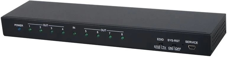 Усилитель-распределитель 1:8 сигналов HDMI 2.0 3D, 4096x2160/60 (YUV420) с HDCP 1.4, CEC и EDID, расстояние передачи сигнала 4K – до 5 м. Поддержка эмбеддированного аудио до 192 кГц.