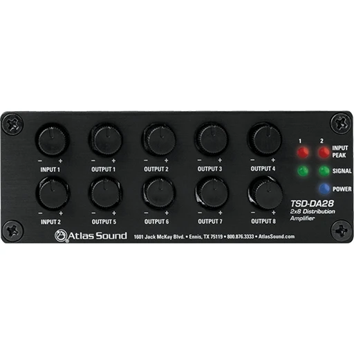 Усилитель-распределитель 2:8 c регулировкой уровня (клеммные разъемы).