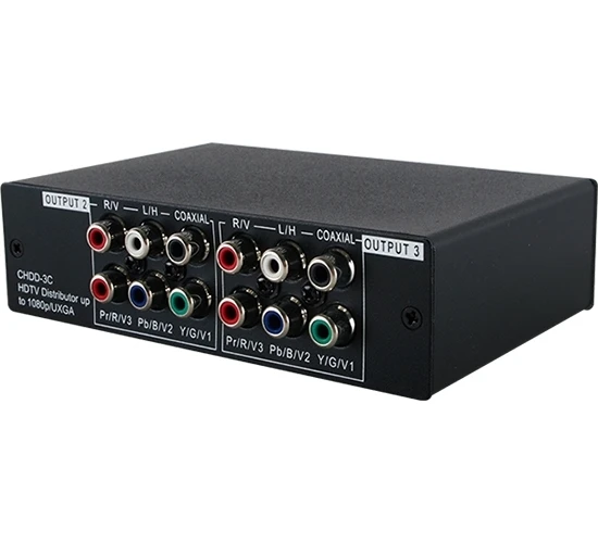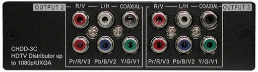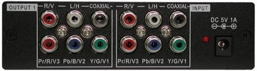 Усилитель-распределитель сигналов 1:3 YUV (3хRCA), аналоговых стереоаудио (2хRCA) и цифровых аудио S/PDIF (RCA).