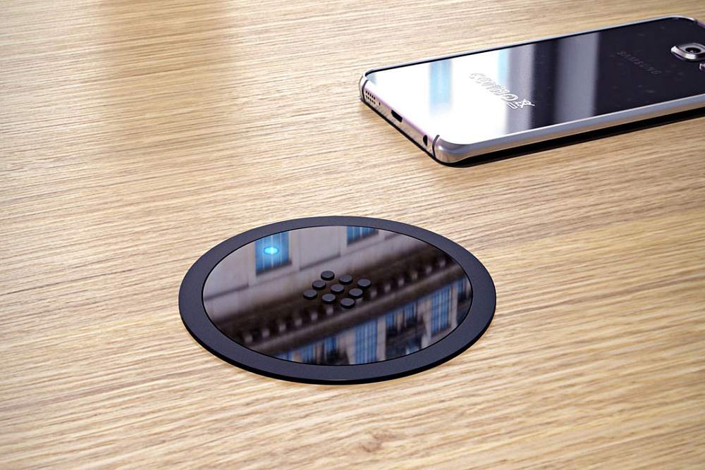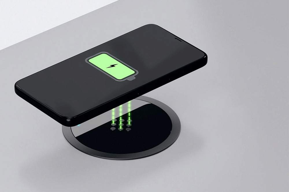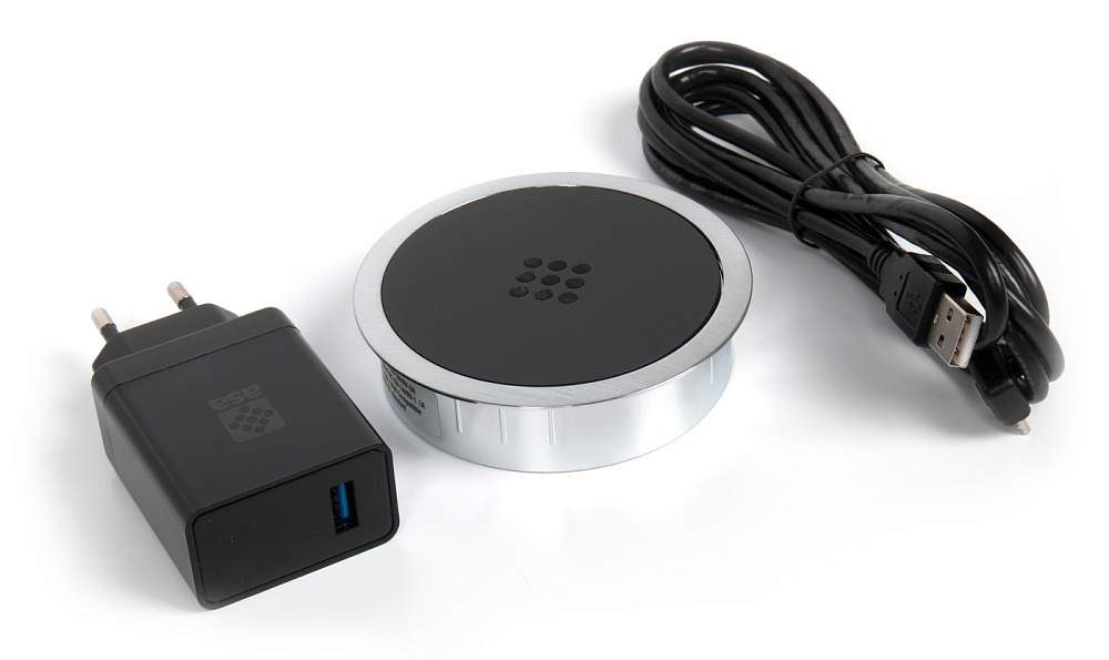 Высококачественное изделие made in Italy. Врезная беспроводная (индукционная) быстрая зарядка подходит для всех гаджетов, поддерживающих стандарт Qi. Компактные размеры. На столе занимает всего 88мм. Малая глубина монтажа (22мм) и компактное угловое подключение кабеля позволяют встроить зарядку практически в любую столешницу, не ограничивая функциональность мебели. Очень простая установка без применения инструментов и крепежей в предварительно подготовленное отверстие диаметром 80мм. Внешнее кольцо прикрывает края выреза. Глубина установки 22мм. Индикация голубым светодиодом помогает проконтролировать контакт в темном помещении, что делает эту зарядку особенно удобной для оснащения мебели для спальни.