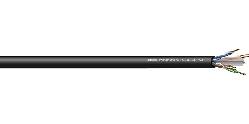 Витая пара CAT6, U/UTP, 4х2х0,25 кв.мм (AWG 23), негорючая, без галогенов, версия CPR Cca.