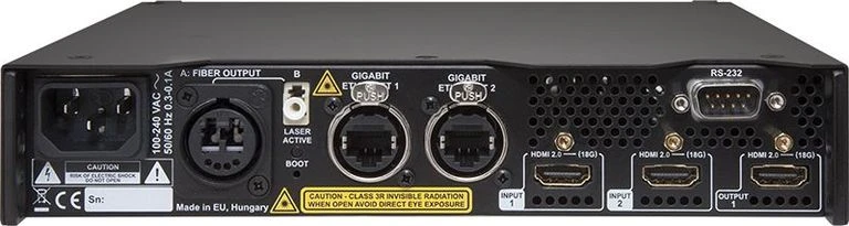 Cпециализированный передатчик-коммутатор 2xHDMI 4K (FullHD) по оптике до 700 м (2500 м), поддержка HDMI 2.0 (18 Гбит/с); двунаправленный RS-232; Ethernet; локальный HDMI выход; оптический коннектор типа Neutrik.