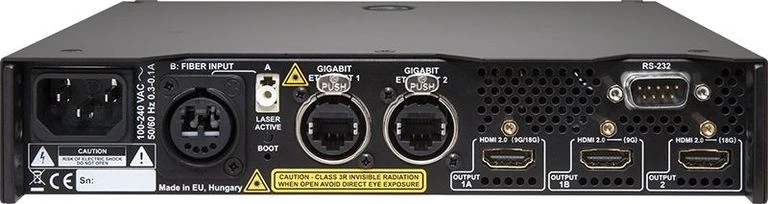 Cпециализированный приемник HDMI 4K (FullHD) по оптике до 700 м (2500 м), поддержка HDMI 2.0 (18 Гбит/с); двунаправленный RS-232; Ethernet; 3xHDMI выхода; оптический коннектор типа Neutrik.