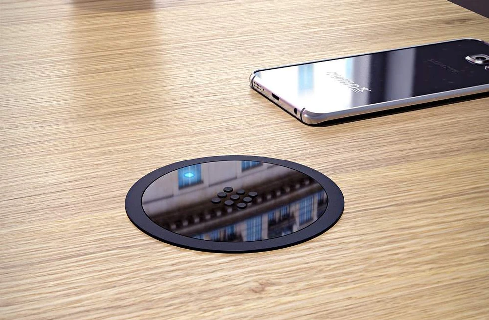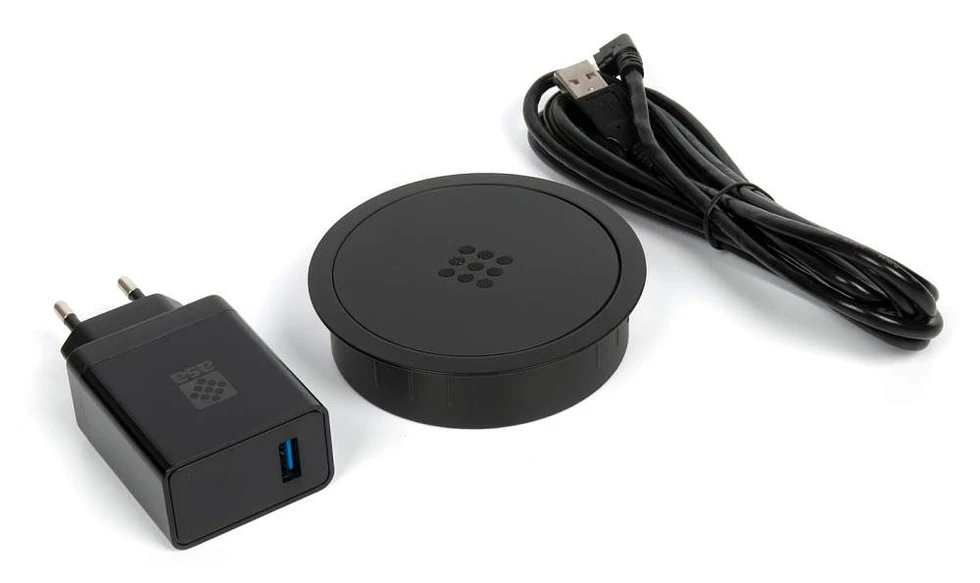 Высококачественное изделие made in Italy. Врезная беспроводная (индукционная) быстрая зарядка подходит для всех гаджетов, поддерживающих стандарт Qi. Компактные размеры. На столе занимает всего 88мм. Малая глубина монтажа (22мм) и компактное угловое подключение кабеля позволяют встроить зарядку практически в любую столешницу, не ограничивая функциональность мебели. Очень простая установка без применения инструментов и крепежей в предварительно подготовленное отверстие диаметром 80мм. Внешнее кольцо прикрывает края выреза. Глубина установки 22мм. Индикация голубым светодиодом помогает проконтролировать контакт в темном помещении, что делает эту зарядку особенно удобной для оснащения мебели для спальни.