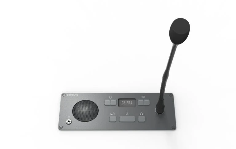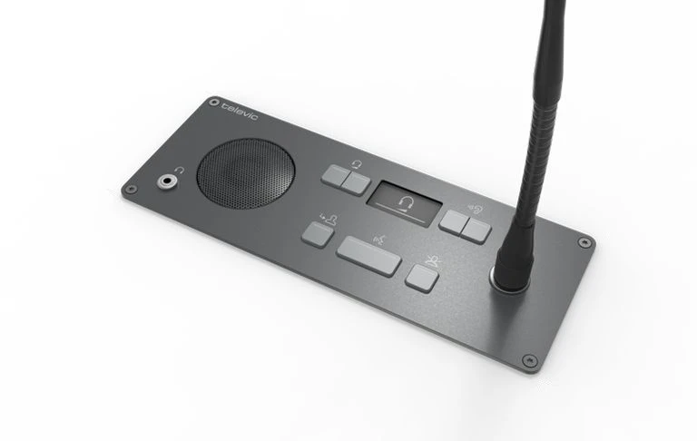 Врезной пульт председателя с селектором каналов, RFID-считывателем карт и OLED-дисплеем серии Plixus Audio