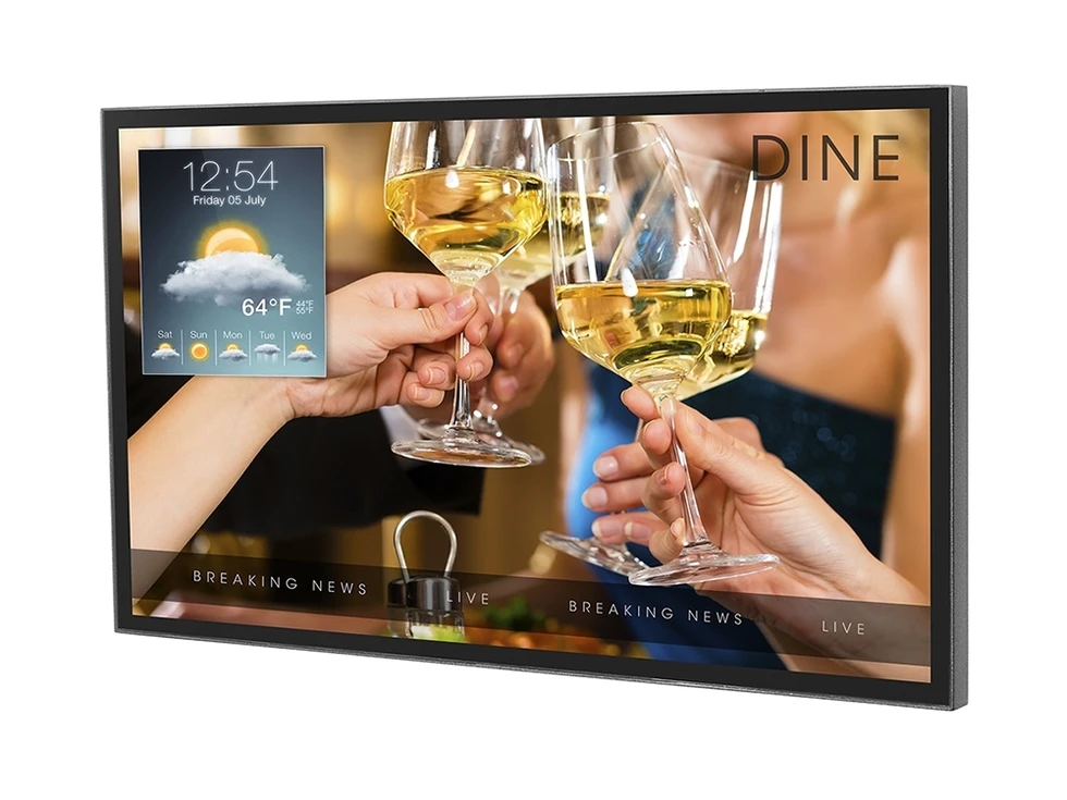 Всепогодная ЖК-панель диагональю 43'', защита IP68, 1080p, 2500 nits, VESA 400x200, 400x400 мм, защита от ИК, датчик освещенности, раб. температура -35…+60°C. Управление по IP, RS-232, ИК.