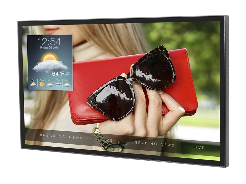 Всепогодная ЖК-панель диагональю 49'', защита IP68, 1080p, 2500 nits, VESA 400x200, 400x400 мм, защита от ИК, датчик освещенности, раб. температура -35…+60°C. Управление по IP, RS-232, ИК.