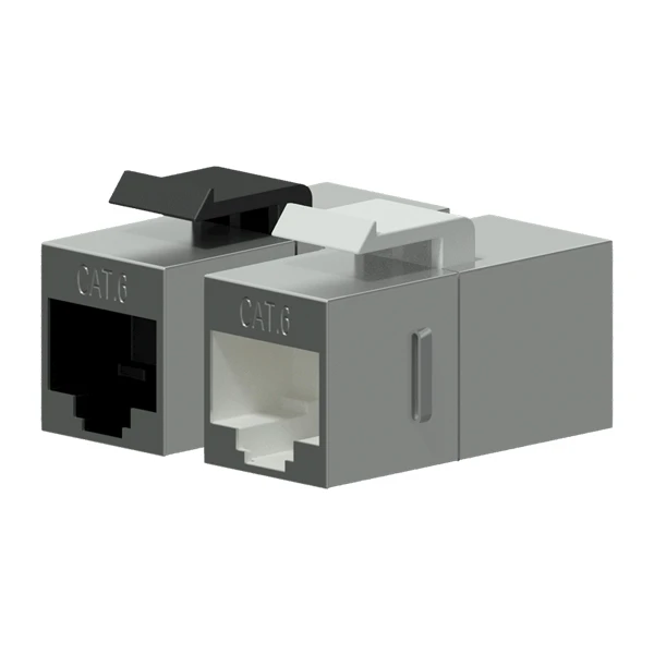 Вставка-переходник Keystone RJ45 Cat6 (розетка) – RJ45 Cat6 (розетка) с экраном, цвет серебристый.