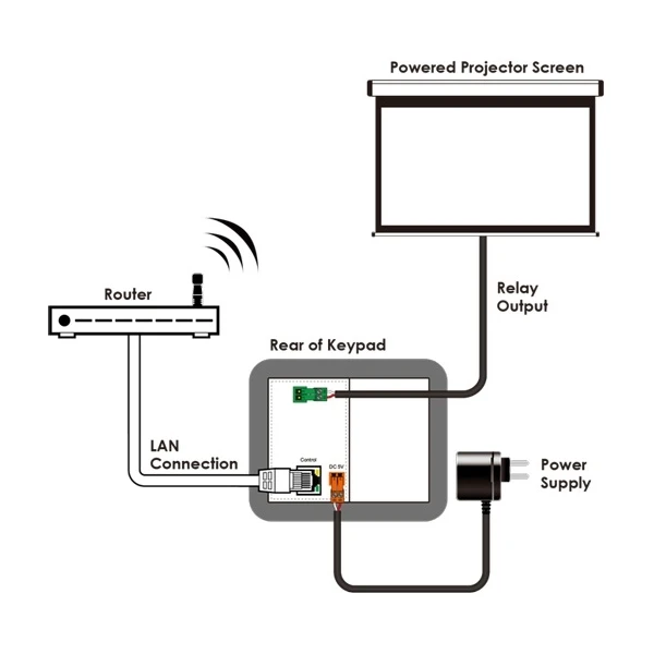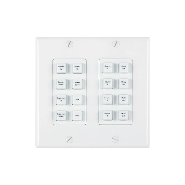 Встраиваемая панель управления с 16 кнопками (128 команд), 1 выход реле, Ethernet 100/1000BaseT (RJ45), может получать питание по PoE, внутренняя память на 48 часов, специальное ПО для настройки.