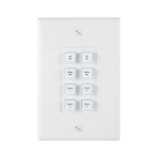 Встраиваемая панель управления с 8 кнопками (128 команд), 1 выход реле, Ethernet 100/1000BaseT (RJ45), может получать питание по PoE, внутренняя память на 48 часов, специальное ПО для настройки.