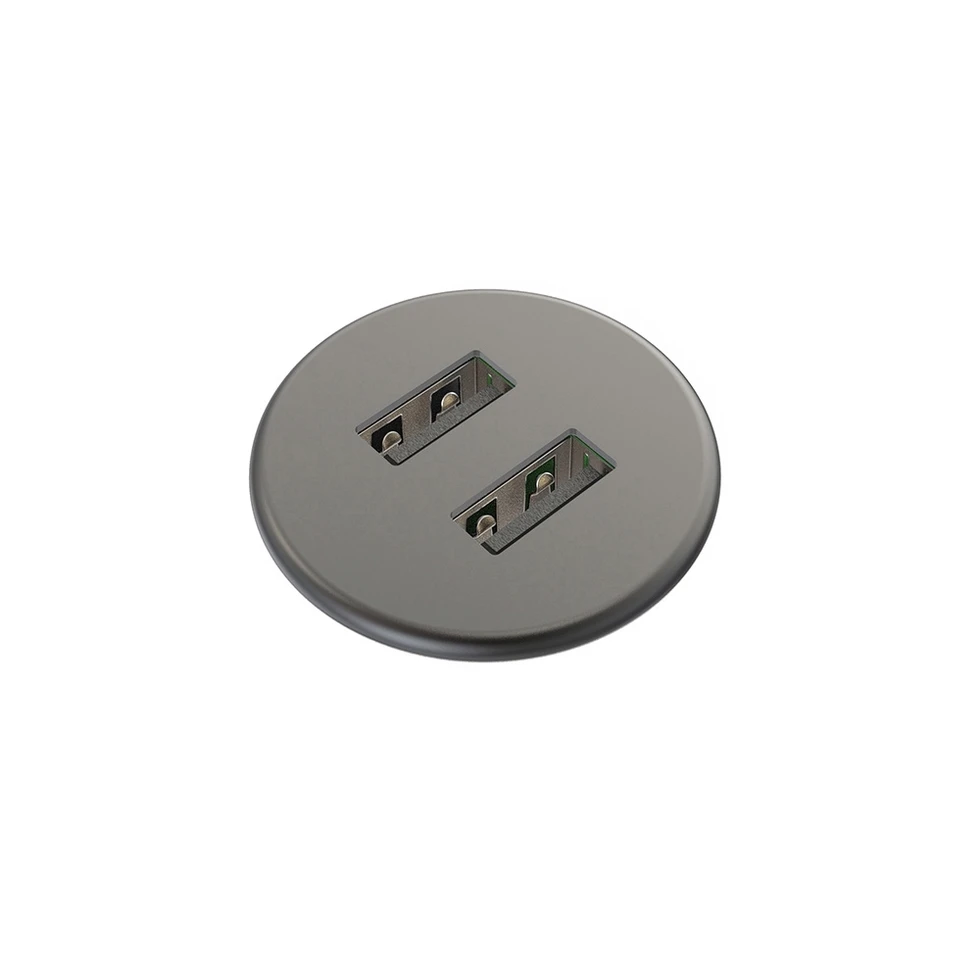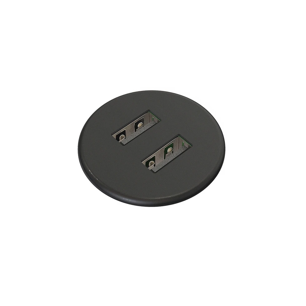 Встраиваемая зарядная станция Powerdot MICRO с 2 разъемами USB (5 В, 2 А). Габаритные размеры (ФxВ): 35х35,8 мм. Монтажное отверстие (диаметр): 30 мм. Максимальная толщина столешницы: 26 мм. Сила тока: 2 А суммарно. Длина кабеля питания: 1,5 м. Материал лицевой панели: металл. Цвет черный.