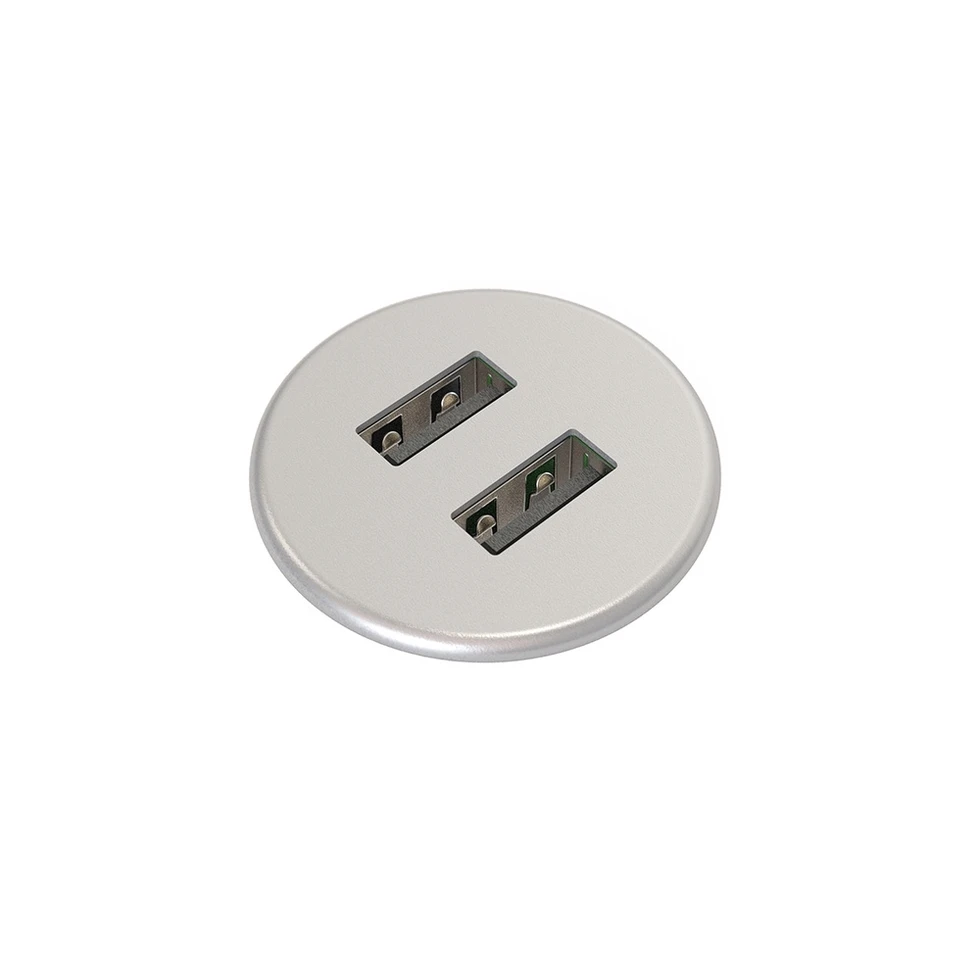 Встраиваемая зарядная станция Powerdot MICRO с 2 разъемами USB (5 В, 2 А). Габаритные размеры (ФxВ): 35х35,8 мм. Монтажное отверстие (диаметр): 30 мм. Максимальная толщина столешницы: 26 мм. Сила тока: 2 А суммарно. Длина кабеля питания: 1,5 м. Материал лицевой панели: металл. Цвет белый.