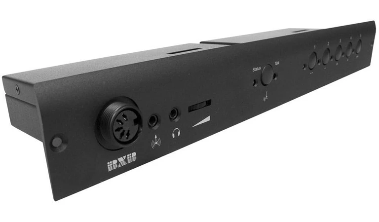 Встраиваемый микрофонный пульт делегата с разъемом для подключения наушников и микрофона. 5 кнопок для системы голосования, имеющие светодиодную индикацию. Не комплектуется микрофоном на «гусиной шее». Подключение по RJ45.
