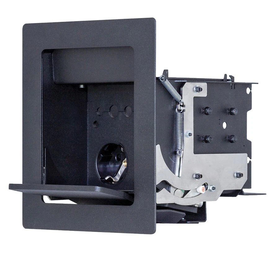 Пользователь может открыть крышку и вытащить необходимый AV-кабель для подключения к устройству-источнику. Когда кабели не используются, их можно поместить обратно внутрь и удерживать под собственным весом. Лишние части кабеля остаются скрытыми, опускаясь из поля зрения под TBX, под столом.