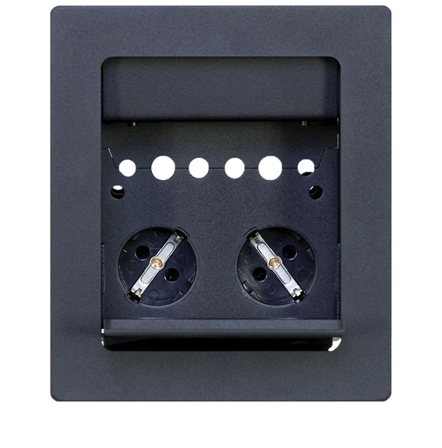 Встраиваемый в стол интерфейсный бокс (лючок) органайзер для 6 аудио-видео кабелей. Включает 2 европейские розетки питания и 6 креплений для вывода кабелей. Кабели приобретаются отдельно.