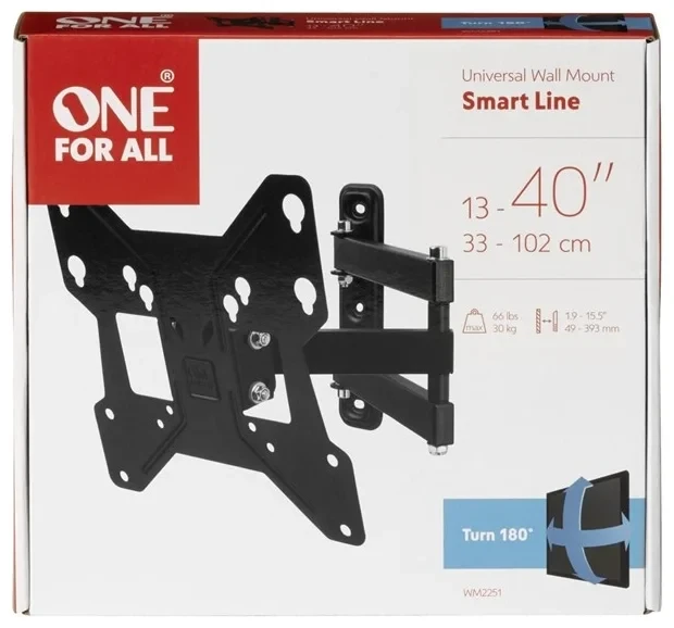 Кронштейн WM2251 - это наклонно-поворотный кронштейн для телевизоров размером от 13 до 40 дюймов и массой до 30 кг. Он подходит для крепления на стены, а также для установки в качестве настольного кронштейна после дополнительной установки крепежа на ребро стола или другой горизонтальной поверхности.