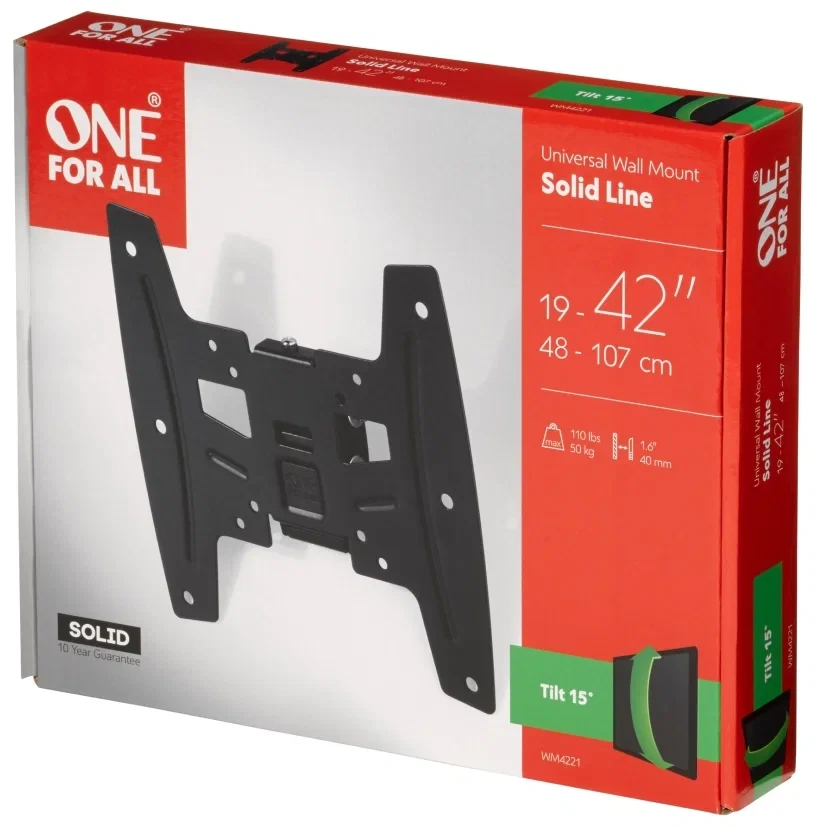 Кронштейн WM4221 имеет максимальную нагрузку до 50 кг, что позволяет жестко крепить экраны практически всех производителей. Серия SOLID, из которой произведен этот кронштейн, отличается повышенной прочностью и надежностью.