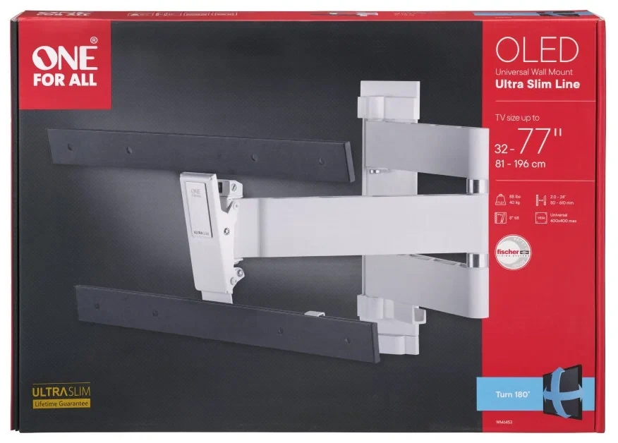 Кронштейн WM6453 - это наклонно-поворотный кронштейн с коленом, предназначенный для OLED ТВ размера от 32 дюймов до 77 дюймов. Он имеет максимальную нагрузку до 40 кг и максимальный размер VESA 400, что позволяет комфортно установить телевизор на стену.