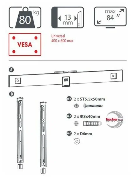 Кронштейн WM6611 - это фиксированный кронштейн для установки телевизоров с диагональю от 32 до 90 дюймов и весом не более 80 кг. Кронштейн поддерживает максимальный размер VESA 600x400 мм и относится к серии ULTRA SLIM, что позволяет установить телевизор как можно ближе к стене.