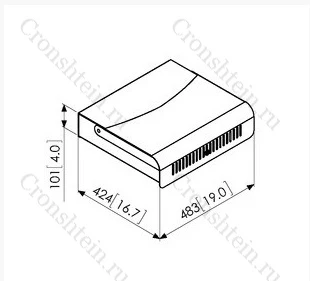 Корпус для скрытого размещения AV-компонента шириной 19 дюймов и высотой 2RU. Фронтальная панель откидывается для доступа к устройству. Нагрузка - 10 кг, прорези обеспечивают вентиляцию и управление с ИК-пульта. Габаритные размеры - 483х424х101 мм. Цвет черный или серебристый.