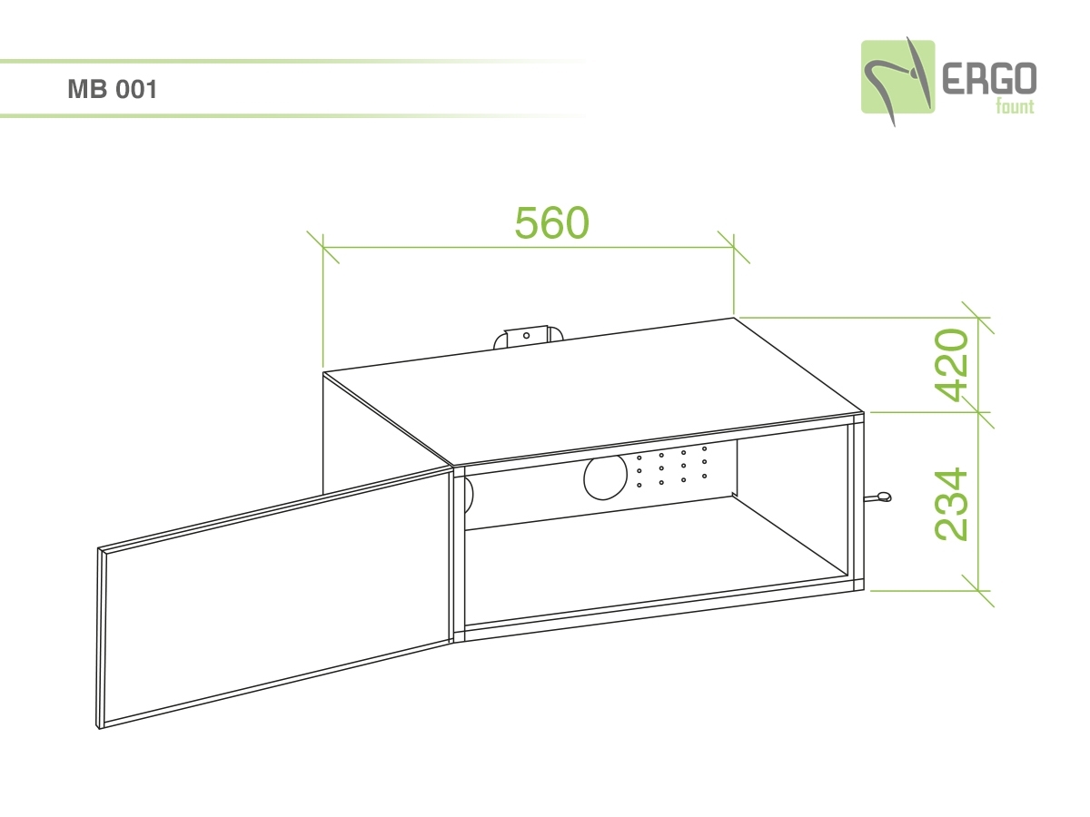 Ящик с дверцей для установки дополнительного оборудования на стойки серии KFTxx. Перфорация. Дверца из оргстекла, запирается на замок. Материал: алюминий. Габаритные размеры: 560х420х234 мм. Цвет серебристый.